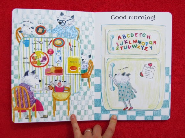 Et si vos GrandsPetitsProches friment un peu au dîner parce qu’ils lisent un roman en anglais et que les petits frères et petites sœurs ont eux aussi envie de découvrir la langue de Shakespeare, je vous conseille Bridget’s book of english. Cet imagier en anglais est ludique grâce à de nombreux flaps à ouvrir. Les illustrations colorées et vives sont agréables. Les Petits pourront découvrir plus de 200 mots ou expressions de la vie quotidienne en anglais. Des comptines sont aussi à découvrir sous les volets et donnent envie de fredonner. Les aliments, les couleurs, les vêtements, les mots de la classe sont mis en scène joyeusement. En fin d’ouvrage, un lexique est proposé pour effectuer des recherches rapides … Effectivement, nous l’utilisons souvent avec GrandGrand et MoyenGrand pour réviser rapidement les cours de collège, mais Chut ! C’est un secret … Dès 1 an.